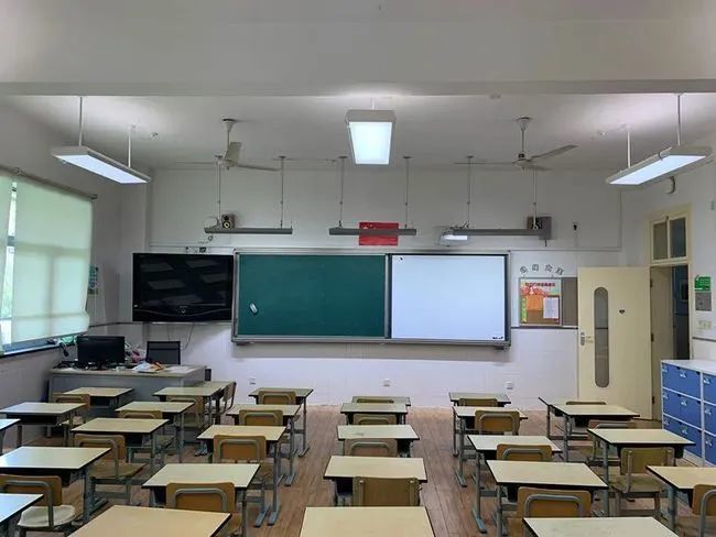 The model classroom is equipped with a new adjustable LED lamp, which can adjust the overall brightness through single lamp and switch control. The LED lamp combination can be set as class mode, projection mode, activity mode, self-study mode, examination mode and class meeting mode according to the national illumination standard. The intelligent light illumination adjustment not only improves the light environment of the classroom and the visual environment of students, but also meets the requirements of healthy lighting of the whole area, whole period and multi scene in the classroom.